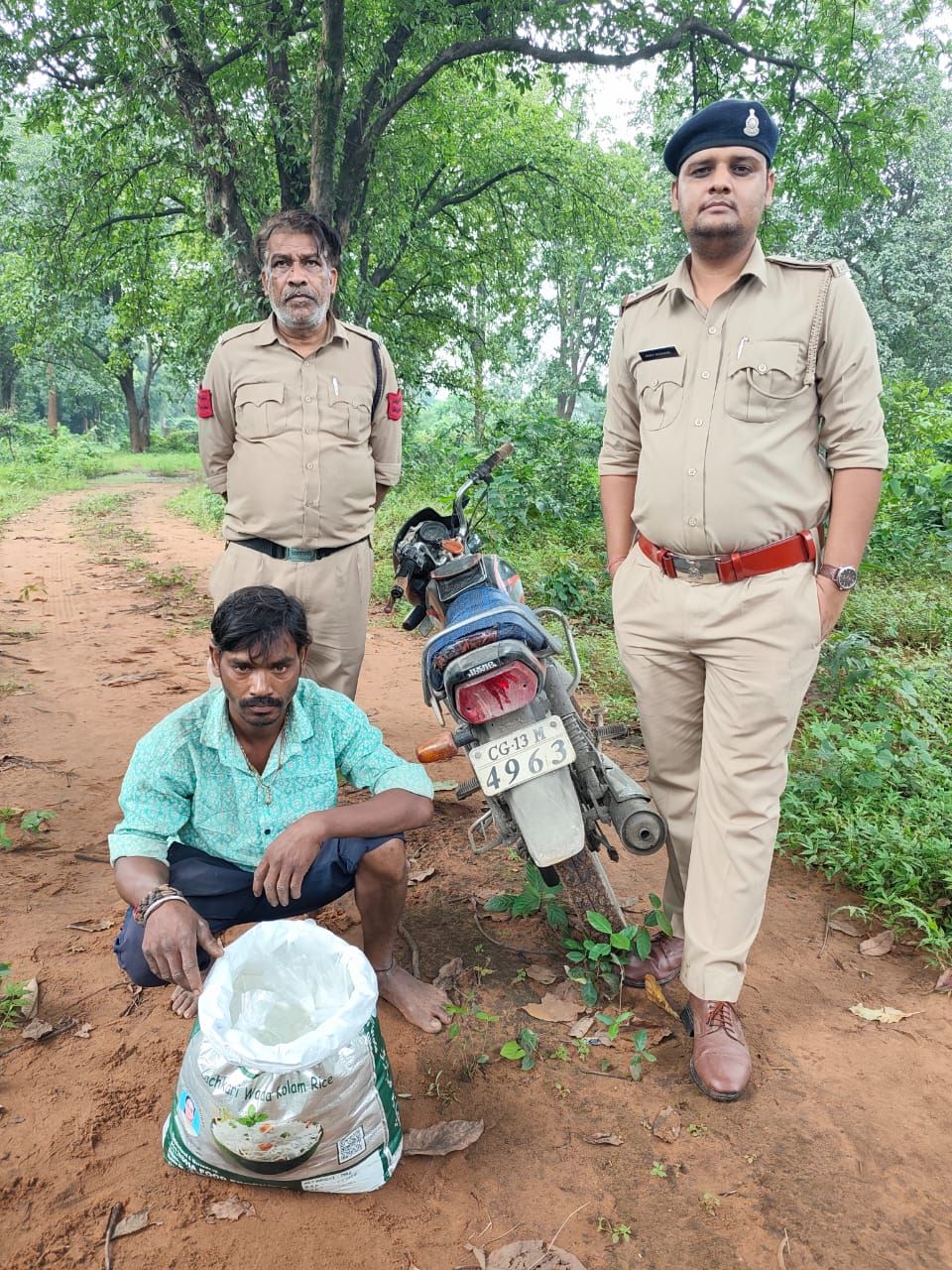 एक अन्य प्रकरण में ग्राम देलारी मुख्य मार्ग पर सरायपाली की ओर से आ रहे वाहनों की सघन जांच के दौरान एक लाल-काले रंग की एचएफ डीलक्स मोटरसाइकिल को रोककर तलाशी ली गई। तलाशी में बाइक के आगे रखे सफेद-हरे रंग के थैले से 113 नग पॉलिथीन पाउच (प्रत्येक में 200-200 मि.ली.) में भरी कुल 22.600 लीटर महुआ शराब बरामद की गई। आरोपी नवीन यादव, निवासी ग्राम देलारी, थाना पूंजीपथरा को गिरफ्तार कर न्यायिक रिमांड पर जेल दाखिल किया गया।