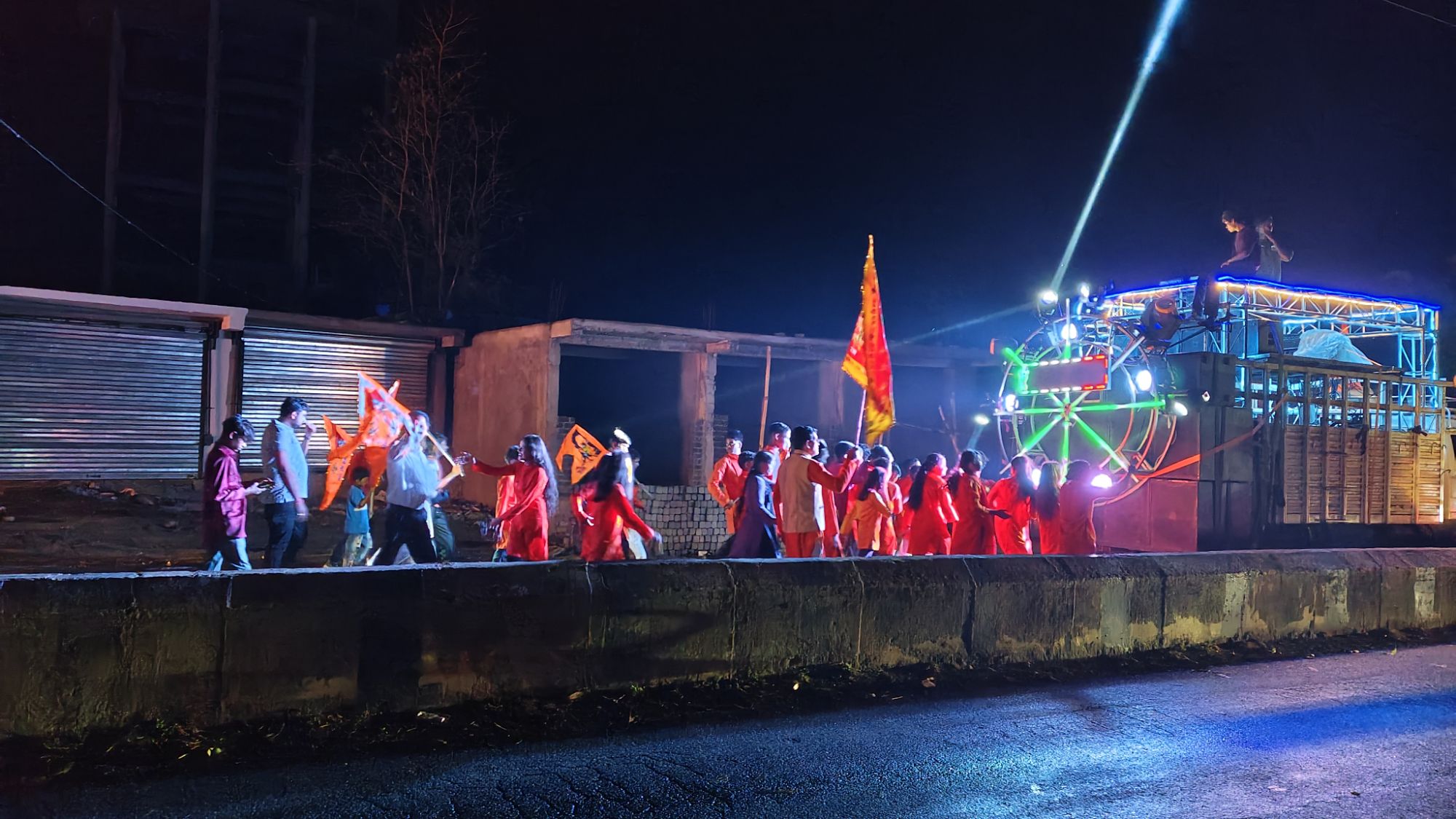рд╢реЛрднрд╛рдпрд╛рддреНрд░рд╛ рдХреА рдЦрд╛рд╕ рдмрд╛рдд рд░рд╣реА рдбреАрдЬреЗ рдХреА рдЧреВрдВрдЬрддреА рдзреБрди рдФрд░ рдкрд╛рд░рдВрдкрд░рд┐рдХ рдХрд░рдорд╛ рдкрд╛рд░реНрдЯреА рдХрд╛ рдЬрдмрд░рджрд╕реНрдд рд╕рдВрдЧрдоред рдпреБрд╡рд╛, рдмрдЪреНрдЪреЗ рдФрд░ рдмреБрдЬреБрд░реНрдЧтАФрд╕рднреА рднрдХреНрддрд┐ рдореЗрдВ рд▓реАрди рд╣реЛрдХрд░ рдирд╛рдЪрддреЗ-рдЧрд╛рддреЗ рдирдЬрд░ рдЖрдПред рдХрд░рдорд╛ рдиреГрддреНрдп рдХреА рддрд╛рд▓ рдФрд░ рдбреАрдЬреЗ рдХреЗ рдмреАрдЯреНрд╕ рдиреЗ рдорд╛рд╣реМрд▓ рдХреЛ рд░реЛрдорд╛рдВрдЪрдХ рдмрдирд╛ рджрд┐рдпрд╛, рдЬрд┐рд╕рд╕реЗ рдкреВрд░рд╛ рдирдЧрд░ рдЙрддреНрд╕рд╛рд╣ рдореЗрдВ рдбреВрдм рдЧрдпрд╛ред