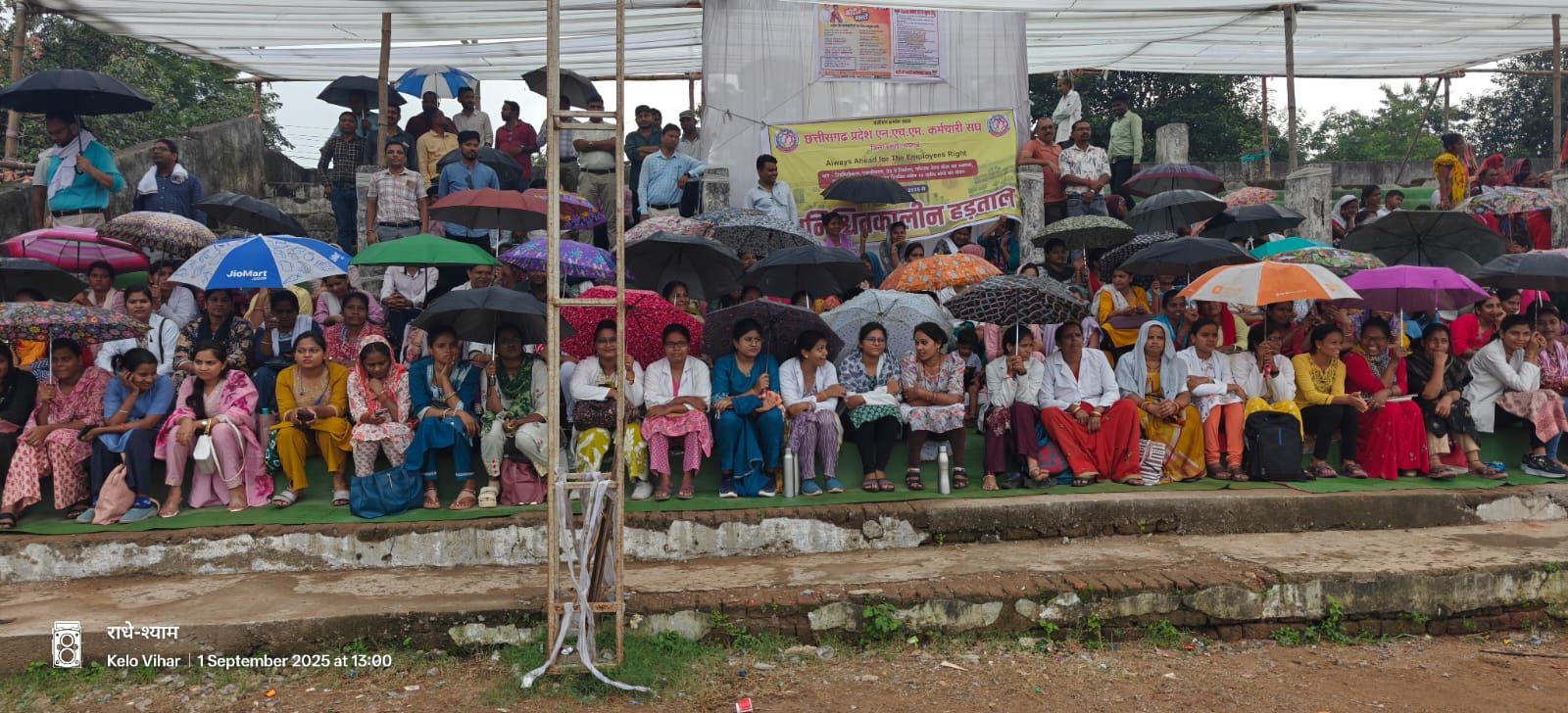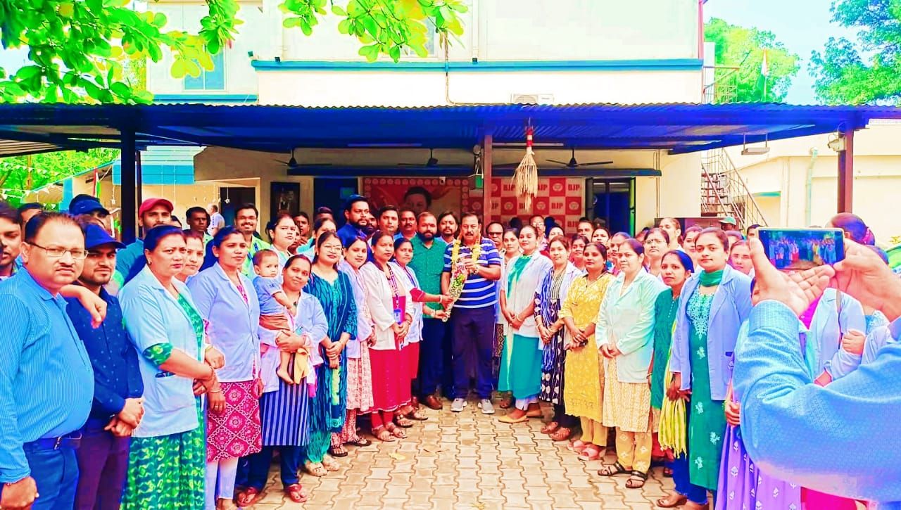 त्तीसगढ़ प्रदेश एन.एच.एम कर्मचारी संघ के बैनर तले राष्ट्रीय स्वास्थ्य मिशन (एनएचएम) के लगभग 16,000 संविदा स्वास्थ्य कर्मचारी, जो 18 अगस्त 2025 से अपनी 10 सूत्रीय मांगों को लेकर अनिश्चितकालीन आंदोलन पर हैं, ने आज आंदोलन के 15वें दिन दुर्ग जिला इकाई के करीब 200 कर्मचारियों ने जिला अध्यक्ष डॉ. आलोक शर्मा के नेतृत्व में दुर्ग लोकसभा सांसद श्री विजय बघेल का पुष्पहार पहनाकर सम्मान किया। कर्मचारियों ने उनकी मांगों के समर्थन के लिए सांसद श्री बघेल के प्रति आभार व्यक्त किया।