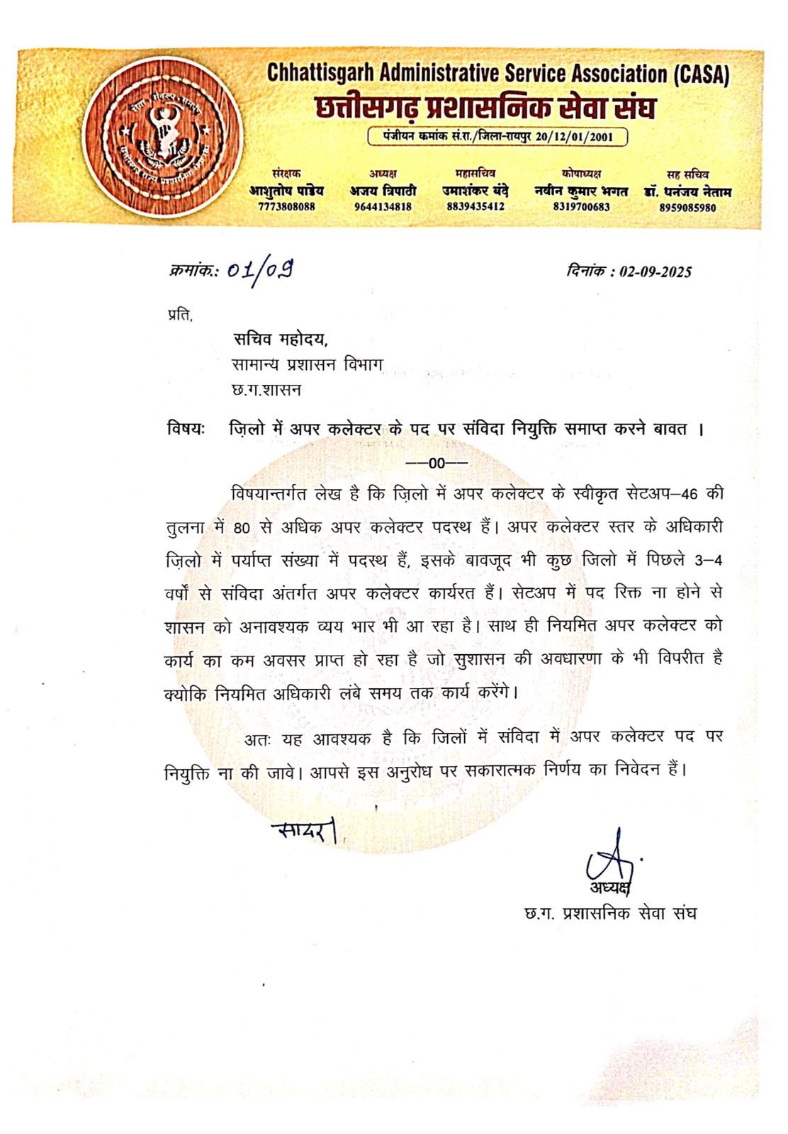 06/09/2025 संविदा नियुक्ति पर घमासान : चौथी बार रिटायर अधिकारी को संविदा पर नियुक्ति, नियमों की अनदेखी से राज्य प्रशासनिक सेवा संघ नाराज़
