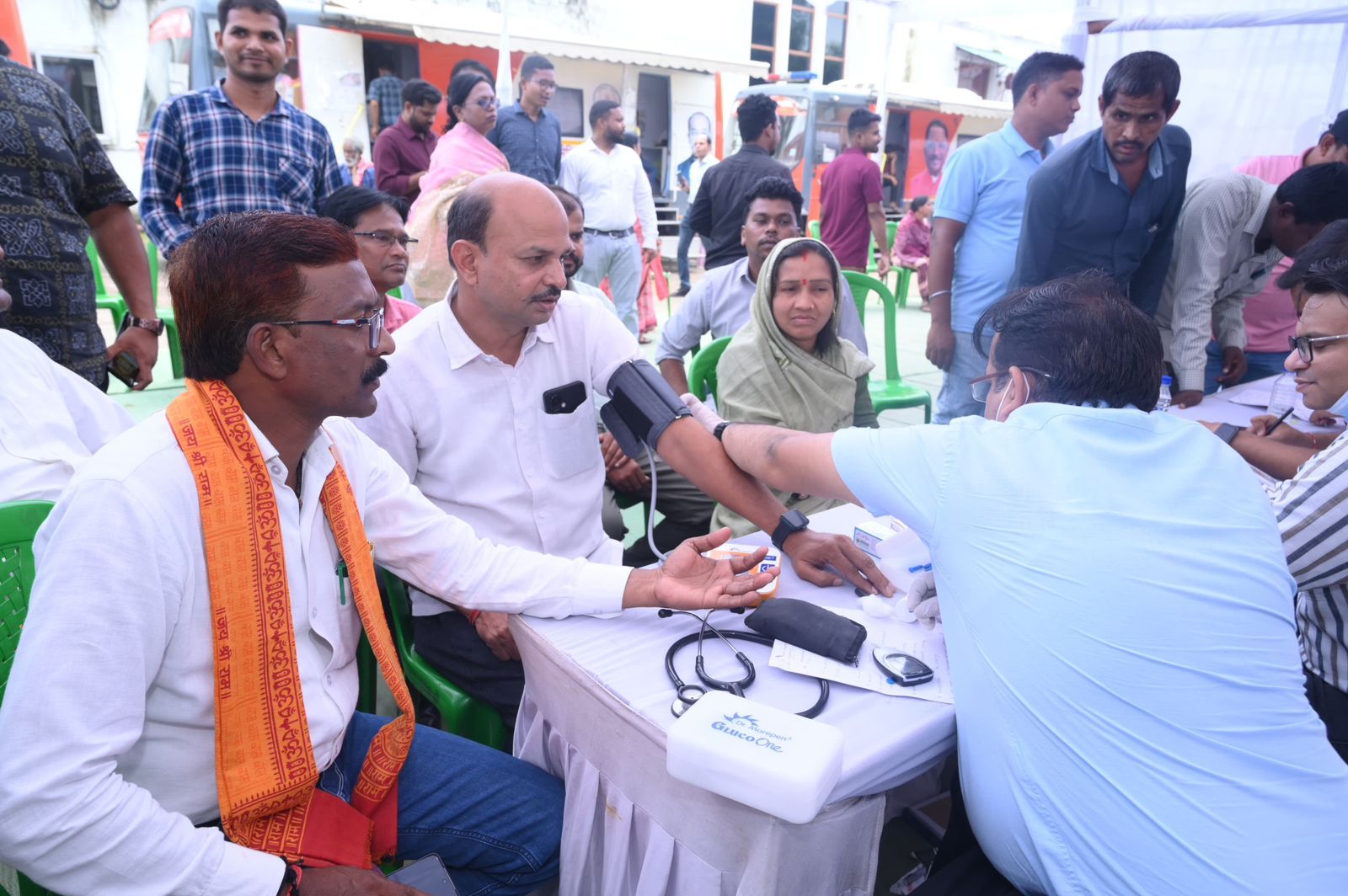 रायगढ़ में हुआ श्रमिक स्वास्थ्य जाँच शिविर का आयोजन*रायगढ़, 16 सितम्बर 2025/ छत्तीसगढ़ राज्य स्थापना के 25 वर्ष पूर्ण होने पर वर्ष 2025 को रजत जयंती वर्ष घोषित किया गया है। इस अवसर पर जिले में आज श्रम विभाग, औद्योगिक स्वास्थ्य एवं सुरक्षा, ईएसआईसी और ईएसआईएस के संयुक्त तत्वावधान में श्रमिक स्वास्थ्य जाँच शिविर का आयोजन किया गया। रायगढ़ के न्यू ऑडिटोरियम हॉल, पंजरी प्लॉट में आयोजित इस शिविर में लगभग 1200 श्रमिकों का नि:शुल्क स्वास्थ्य परीक्षण किया गया। जिसमें रक्तचाप, मधुमेह, हिमोग्लोबिन, नेत्र परीक्षण सहित महिला श्रमिकों के लिए विशेष स्त्री रोग परामर्श की सुविधा भी उपलब्ध रही।