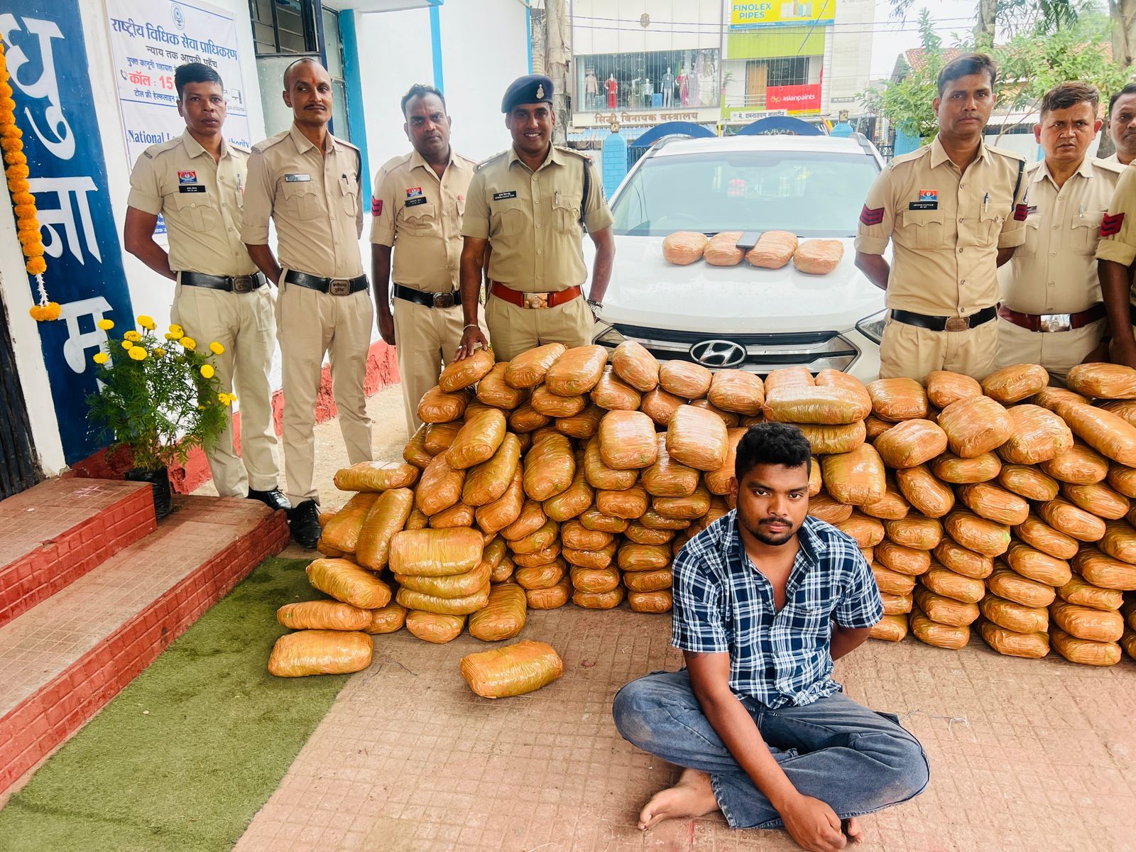गांजा तस्करी पर घरघोड़ा पुलिस की बड़ी कार्रवाई, हुंडई कार से ढाई क्विंटल गांजा बरामद, एक आरोपी गिरफ्तार