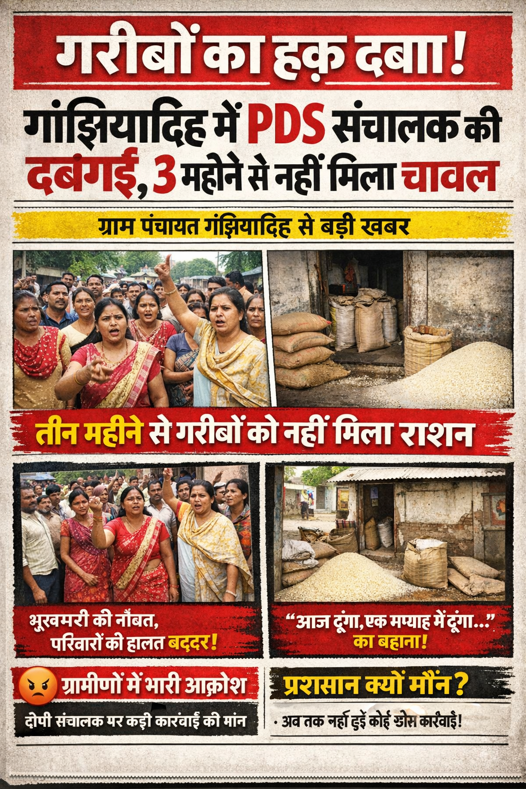 06/04/2026 🚨💥***गरीबों का हक़ दबा! गंझियाडिह में PDS संचालक की दबंगई, 3 महीने से नहीं मिला चावल