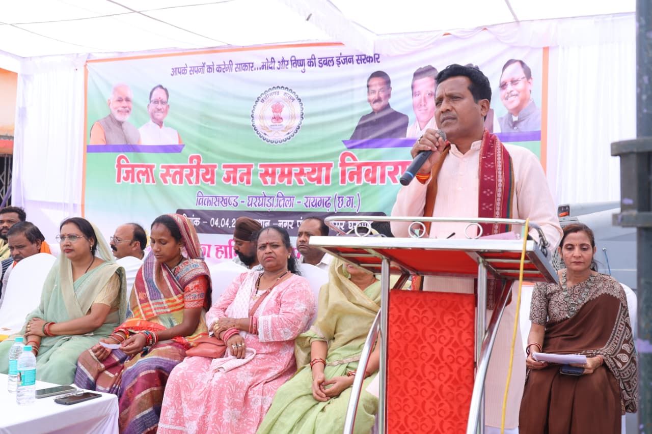 04/04/2026 🚨💥🌟🚨*घरघोड़ा में आयोजित जनसमस्या निवारण शिविर में सैकड़ों हितग्राही हुए लाभान्वित**लोकसभा सांसद श्री राधेश्याम राठिया ने किया शिविर का अवलोकन**43 हितग्राही सीधे हुए लाभान्वित, कई को मिला ऑन-द-स्पॉट समाधान**पीएम सूर्य घर योजना सहित योजनाओं का हुआ प्रचार-प्रसार**राजस्व, स्वास्थ्य एवं पोषण सेवाओं पर विशेष फोकस**पेयजल समस्या के समाधान हेतु दिए गए निर्देश*ायगढ़, 4 अप्रैल 2026/ जिला प्रशासन द्वारा आमजन की समस्याओं के त्वरित एवं गुणवत्तापूर्ण निराकरण हेतु घरघोड़ा में जिला स्तरीय जनसमस्या निवारण शिविर का आयोजन किया गया। शिविर में बड़ी संख्या में ग्रामीणों ने भाग लेकर अपनी समस्याओं के समाधान हेतु आवेदन प्रस्तुत किए तथा विभिन्न योजनाओं का लाभ प्राप्त किया। लोकसभा सांसद श्री राधेश्याम राठिया ने शिविर का अवलोकन कर अपने संबोधन में कहा कि सरकार की मंशा है कि आम जनता की समस्याओं का समाधान सरल एवं सहज तरीके से उनके द्वार पर ही हो। उन्होंने कहा कि प्रधानमंत्री श्री नरेंद्र मोदी एवं मुख्यमंत्री श्री विष्णुदेव साय के नेतृत्व में यह पहल की गई है, ताकि किसानों, मजदूरों, दिव्यांगजनों सहित सभी वर्गों की समस्याओं का त्वरित निराकरण हो सके। उन्होंने कहा कि ऐसे शिविर उन लोगों के लिए विशेष रूप से लाभकारी हैं, जो विभिन्न कारणों से कार्यालयों तक नहीं पहुंच पाते। आज प्रशासन की पूरी टीम यहां उपस्थित होकर लोगों की समस्याएं सुन रही है और उनका समाधान कर रही है।