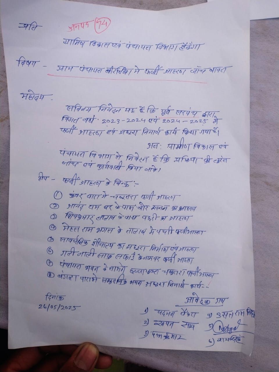 ग्रामीणों की मांग: विकास एवं पंचायत विभाग इस मामले की तत्काल जांच कर दोषियों पर कड़ी कार्रवाई करे, ताकि भविष्य में इस तरह की अनियमितताओं पर रोक लगाई जा सके और ग्राम में पारदर्शिता कायम हो सके।