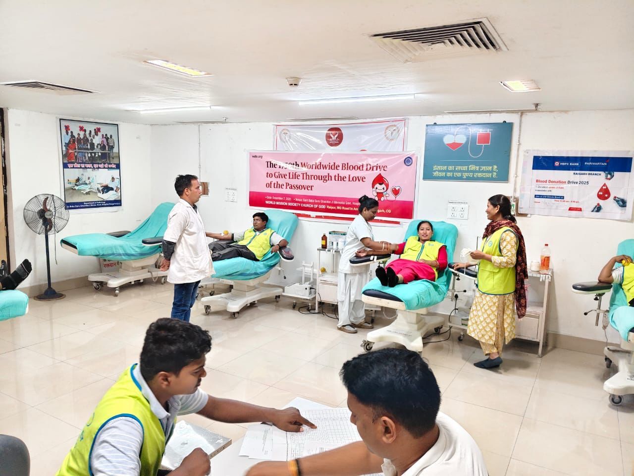 रायगढ़, 08 दिसम्बर 2025। स्व.श्री लखीराम अग्रवाल स्मृति शासकीय चिकित्सा महाविद्यालय संबद्ध संत बाबा गुरु घासीदास जी स्मृति शासकीय चिकित्सालय रायगढ़ में चर्च ऑफ गॉड वर्ल्ड मिशन सोसाइटी द्वारा रक्तदान शिविर का आयोजन किया। जिसमे थीम फसह के प्रेम के द्वारा जीवन देने के लिए 1750वीं विश्व रक्तदान ड्राइव’ का आयोजन किया। जिसमे रायगढ़, रायपुर और अंबिकापुर से सोसाइटी के सदस्यों और नागरिकों ने रक्तदान में भाग लिया। 43 लोगों द्वारा रक्तदान किए गए। रक्त दान से आपात स्थिति में रक्त की कमी से जूझ रहे मरीजों की जान बचाने में उपयोग किए जा सकेंगे और सिकल सेल एनीमिया, थेलीसिमिया के मरीजों में रक्त की कमी की समस्या को दूर करने में भी बड़ी मदद मिलेगी।