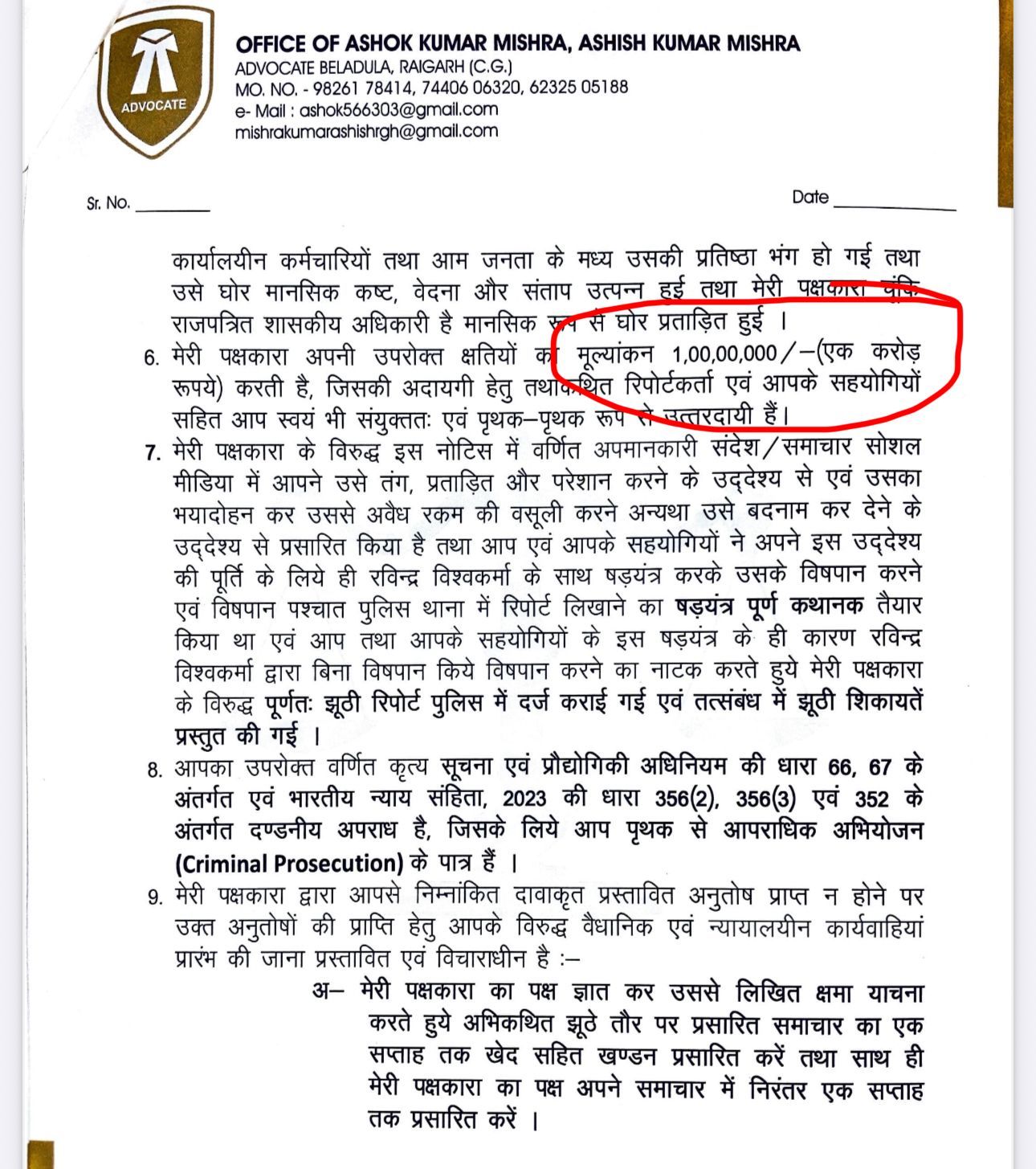 22/08/2025. *बड़ी खबर: जशपुर में जनसंपर्क विभाग के अधिकारी का पत्रकारों को नोटिस, एक-एक करोड़ हर्जाने की धमकी