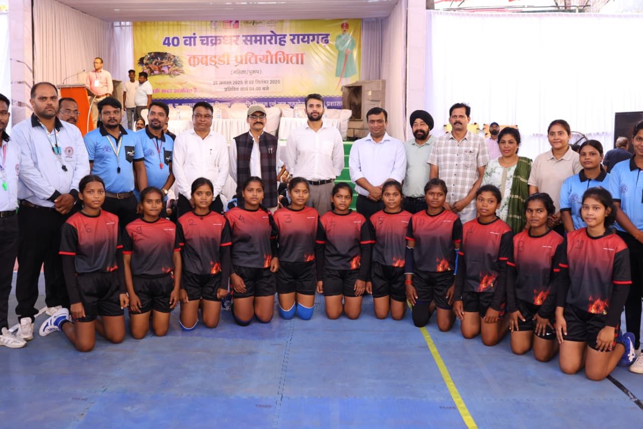 ायगढ़, 1 सितम्बर 2025/ 40वें चक्रधर समारोह के अंतर्गत मोतीमहल प्रांगण में आयोजित तीन दिवसीय जिला स्तरीय कबड्डी प्रतियोगिता का दूसरा दिन रोमांच और उत्साह से भरपूर रहा। आज के मुकाबलों का शुभारंभ कलेक्टर श्री मयंक चतुर्वेदी एवं पुलिस अधीक्षक श्री दिव्यांग पटेल द्वारा कला सम्राट महाराजा चक्रधर सिंह और भगवान हनुमान के छायाचित्र पर माल्यार्पण कर किया गया।