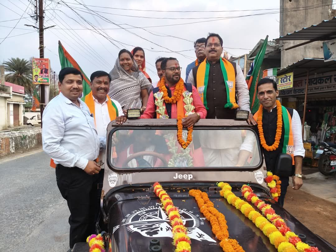 लैलूंगा शांति नगर भाजपा कार्यालय से रोड शो का शुभारंभ किया गया और लैलूंगा हॉस्पिटल के पास दीपक सिदार के घर पर समापन किया गया