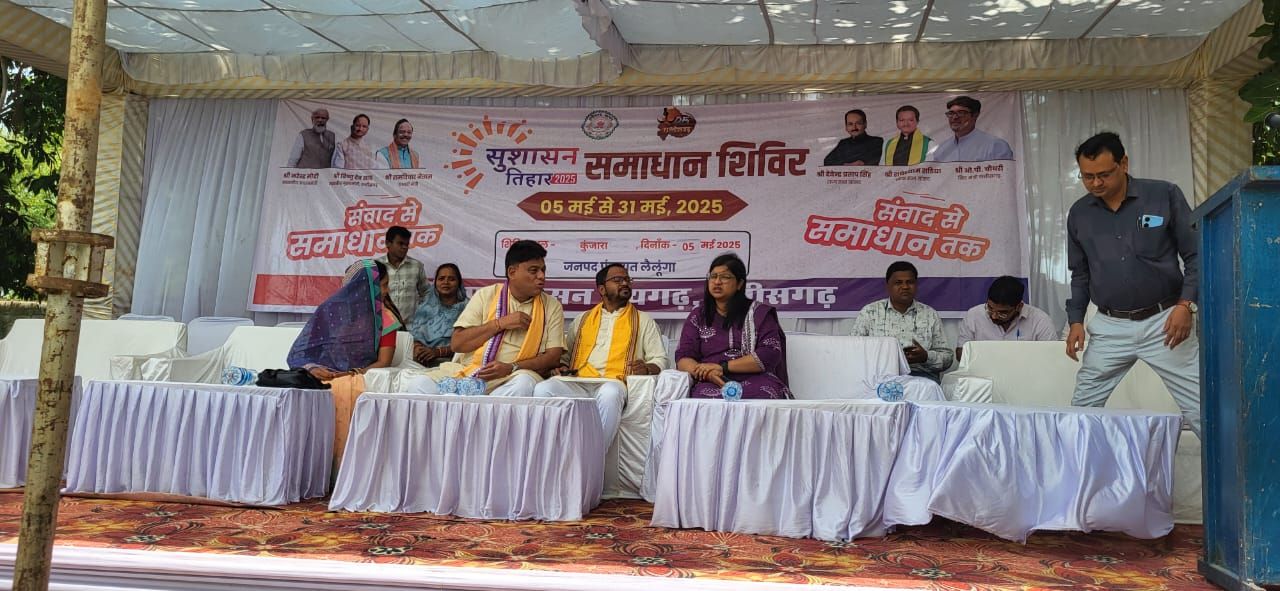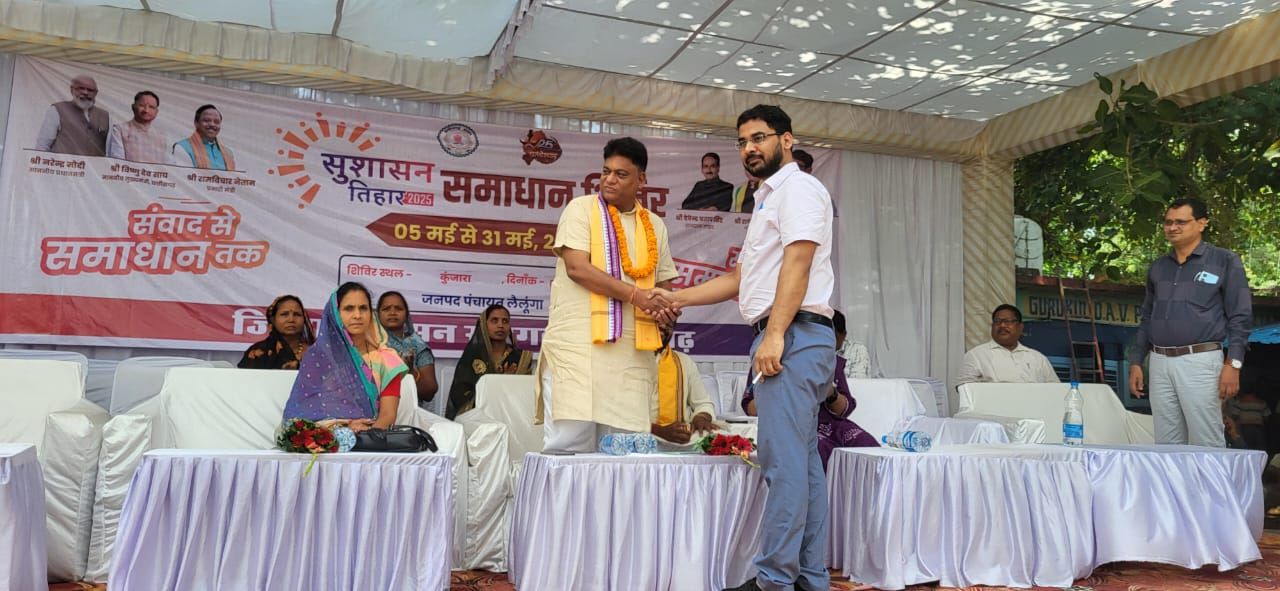 लैलूंगा 05.05.2025 *लैलूंगा, कुंजारा — लैलूंगा विकासखंड के ग्राम कुंजारा में आयोजित सुशासन त्यौहार का आयोजन बड़े हर्षोल्लास के साथ किया गया, जिसमें क्षेत्रीय जनप्रतिनिधियों और विभिन्न विभागों के अधिकारियों की गरिमामयी उपस्थिति रही। इस कार्यक्रम में जिला पंचायत उपाध्यक्ष दीपक सिदार मुख्य अतिथि के रूप में उपस्थित रहे।
