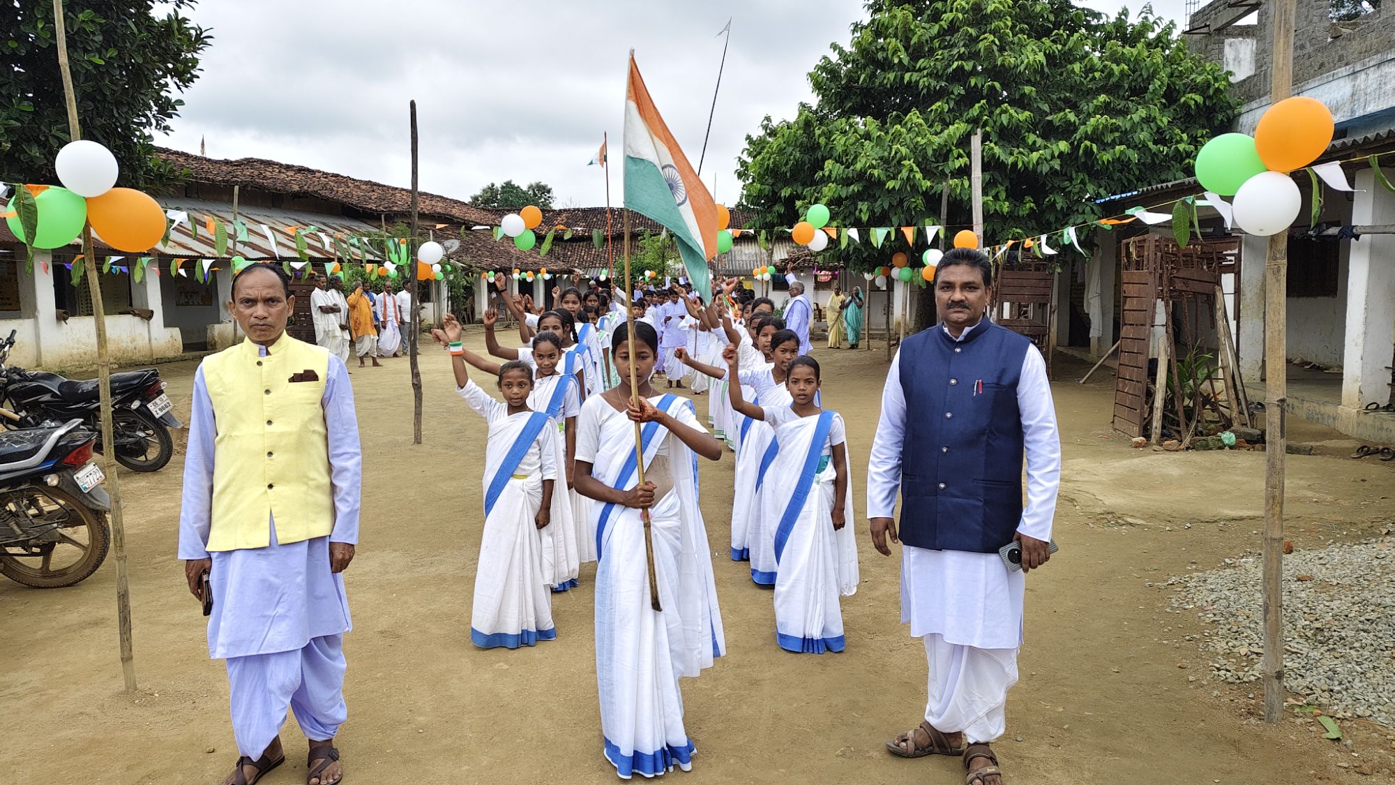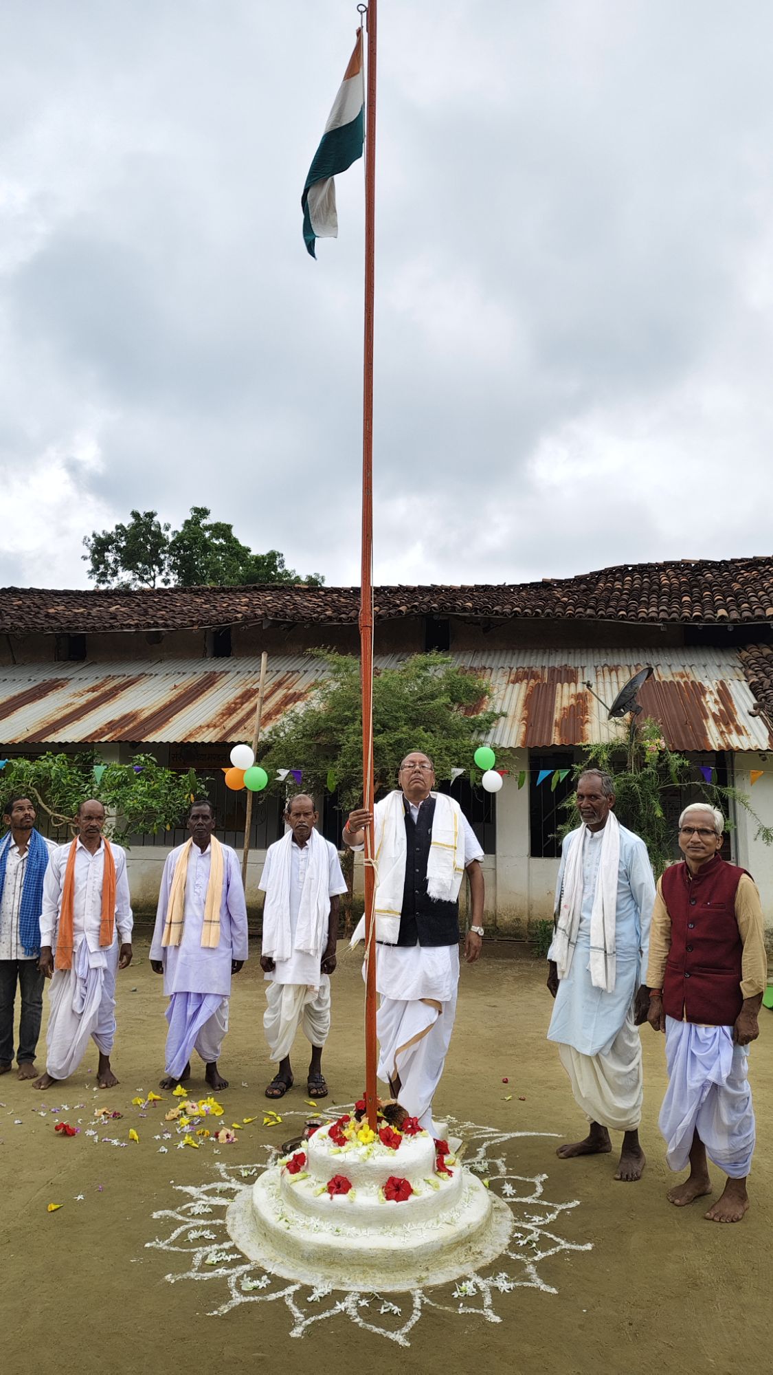 लैलूंगा 15/08/2025. 79 वीं स्वतंत्रता दिवस समारोह का आयोजन हुआ। श्री रामेश्वर गहिरा माध्यमिक स्कूल के सभापति मधुकर सिंघानिया ने स्कूल में तिरंगे झंडे का ध्वजारोहण किया।इस अवसर पर स्कूल के शिक्षक और पालक और गण नागरिक उपस्थित रहे। स्कूल की छात्र-छात्राओं के द्वारा प्रभात फेरी निकल गई भारत माता की जय , तिरंगा झंडा जिंदाबाद के नारे लगाए गए। प्रभात फैरी लैलूंगा के मेन चौक तक निकल गया। श्री रामेश्वर गहिरा स्कूल के बच्चों की प्रभात फैरी अन्य स्कूलों के बच्चों से बिल्कुल अलग दिखाई दे रही थी। इस स्कूल की छात्र-छात्राओं की ड्रेस छात्राएं साड़ीयों में और बच्चे धोती कुर्ते में बहुत ही सुंदर नजर आए। रामेश्वर गहिरा स्कूल एक सांस्कृति स्कूल है जो कि लैलूंगा के लिए गौरव की बात है।