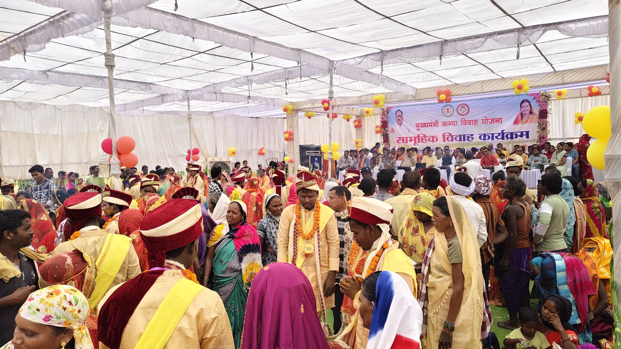 मुख्यमंत्री कन्या विवाह योजना के अंतर्गत आज रायगढ़ जिले के लैलूंगा विकासखण्ड के इंद्रप्रस्थ स्टेडियम लैलूंगा में सामूहिक विवाह का आयोजन किया गया। योजनांतर्गत आज 75 वर-वधू के जोड़े दांपत्य सूत्र में बंधे और सुखमय जीवन का संकल्प लेकर एक नई जिंदगी की शुरूआत की। कार्यक्रम में मुख्य अतिथि के रूप मे राज्य सभा सांसद प्रताप सिंह जी शामिल हुए।