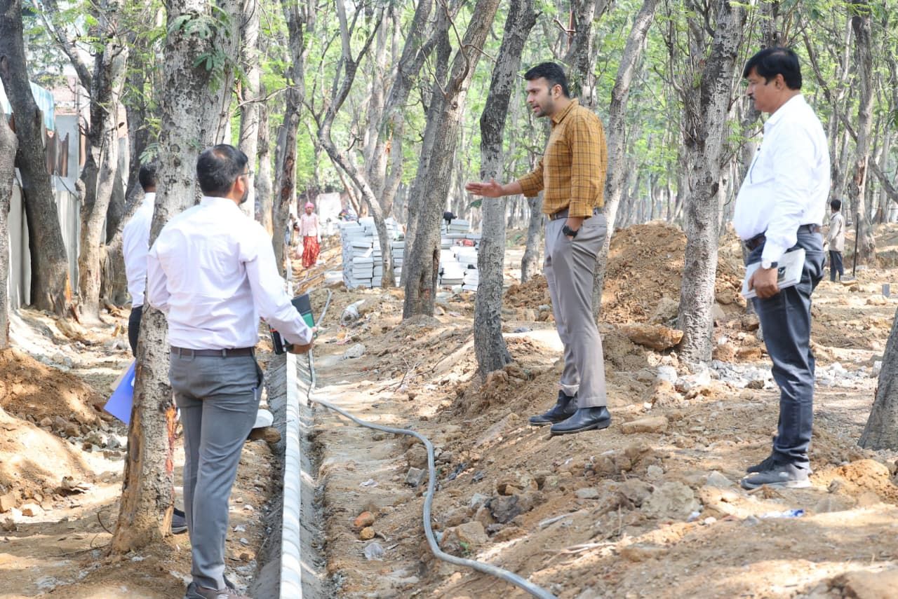 *स्विमिंग पूल, सिंथेटिक एथलेटिक ट्रैक, पंचतत्व उद्यान और नाला निर्माण कार्यों का किया निरीक्षण*