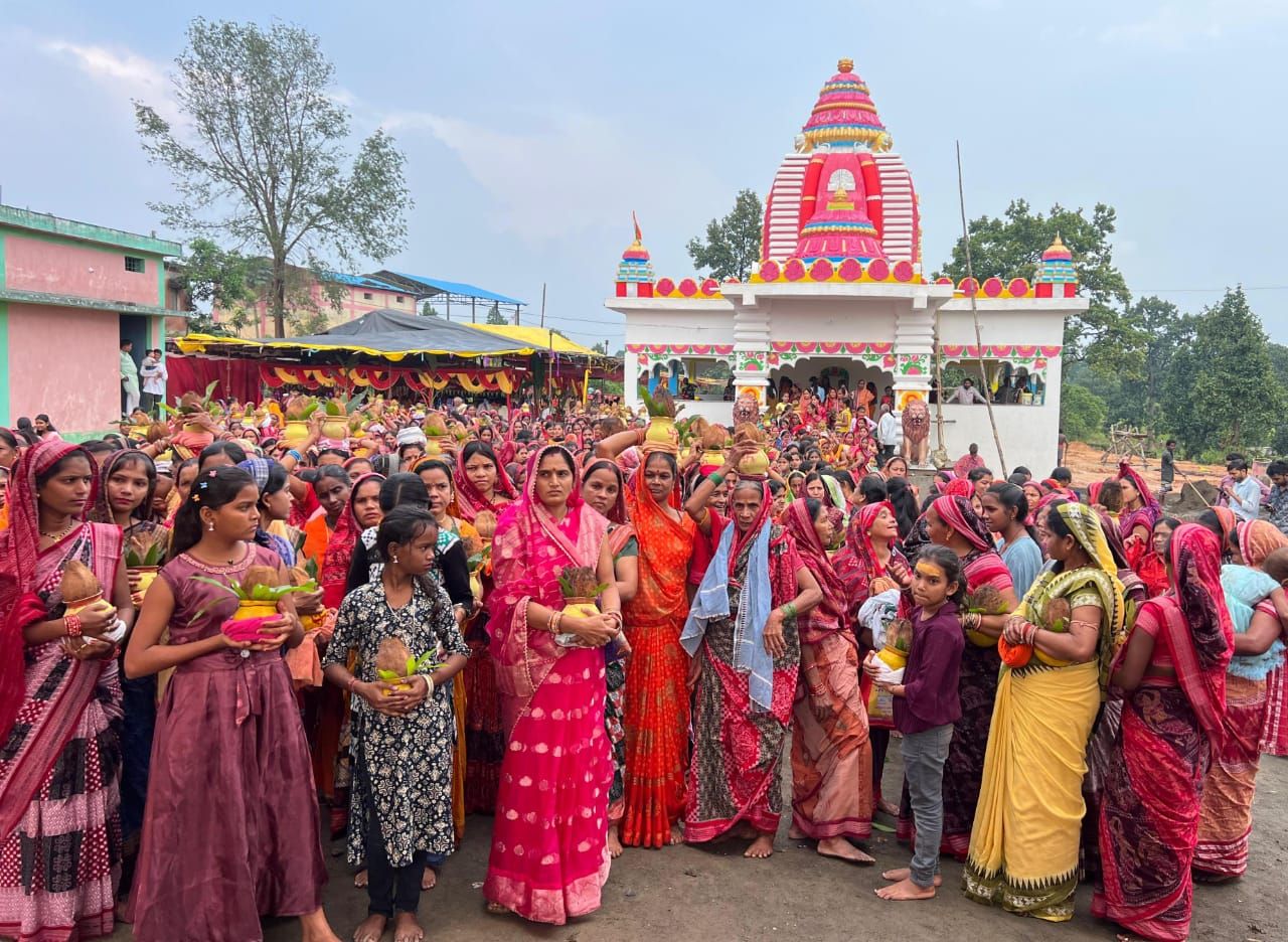 09/10/2025. नवनिर्मित रामचंडी मंदिर झगरपुर में प्राण प्रतिष्ठा समारोह के प्रथम दिवस हुआ भव्य कलश यात्रा, भारी संख्या में समाज की महिलाएं हुई सम्मिलित