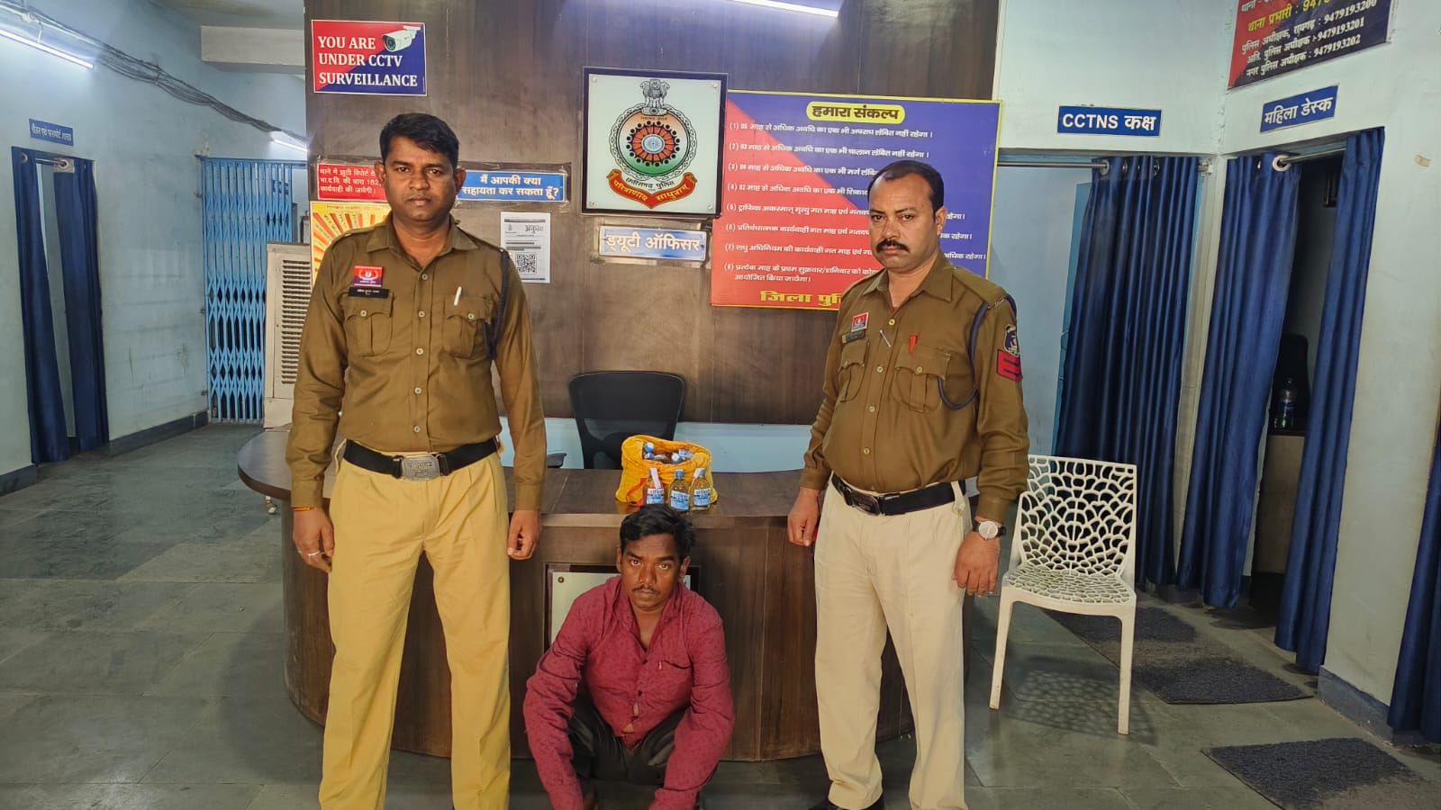कोतरारोड़ थाना प्रभारी निरीक्षक मोहन भारद्वाज के नेतृत्व में मुखबिर सूचना पर किरोडीमल नगर स्थित शराब भट्टी के पास कार्रवाई करते हुए आरोपी मुरलीधर चौहान (41 वर्ष), निवासी उच्चभिट्ठी, थाना कोतरारोड़ को पकड़ा गया। आरोपी के कब्जे से प्लास्टिक थैले में रखी 35 पाव रोमियो देशी शराब, कुल 6.300 लीटर, अनुमानित कीमत 2,800 रुपये जप्त की गई।