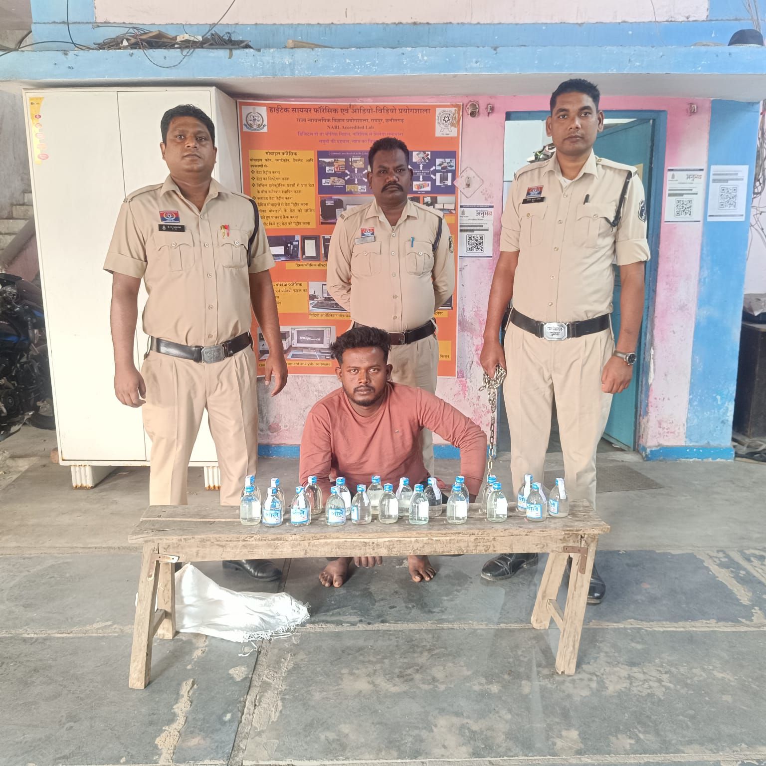 कार्रवाई के तहत *थाना घरघोड़ा पुलिस* ने ग्राम कुडुमकेला में कल शराब रेड कार्यवाही में आरोपी रियाकत अली पिता स्व. लियाकत अली उम्र 44 साल साकिन कुडुमकेला बाजारपारा, थाना घरघोडा को पकड़ा गया जिसके कब्जे से *42 लीटर कच्ची महुआ शराब जब्त* कर गिरफ्तार किया।