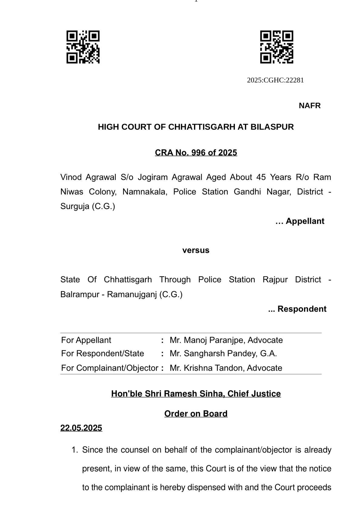 न्यायालय: माननीय मुख्य न्यायाधीश, छत्तीसगढ़ उच्च न्यायालय