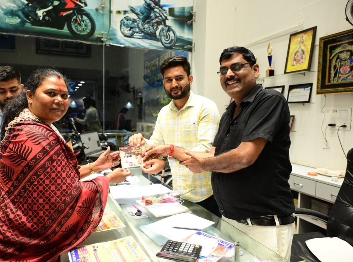 आज जिंदल बजाज के को – अनार युवा व्यवसाय ऋषभ जिंदल ने बताया कि 22 सितंबर यानी नवरात्रि के प्रथम दिन से बजाज की गाड़ियों में 5800 से 15200 तक की छूट दी जा रही है उनकी टैगलाइन थी कि प्लैटिनम के दम पर बजाज पलसर घर ले जाओ जिंदल बाजार अपने प्रत्येक ग्राहकों को प्रत्येक गाड़ी के साथ ₹5000 का गिफ्ट भी दे रहे हैं धनतेरस की खरीदी पर एक चांदी का सिक्का और बाइक की स्पेशल डिलीवरी भी कराई जाएगी