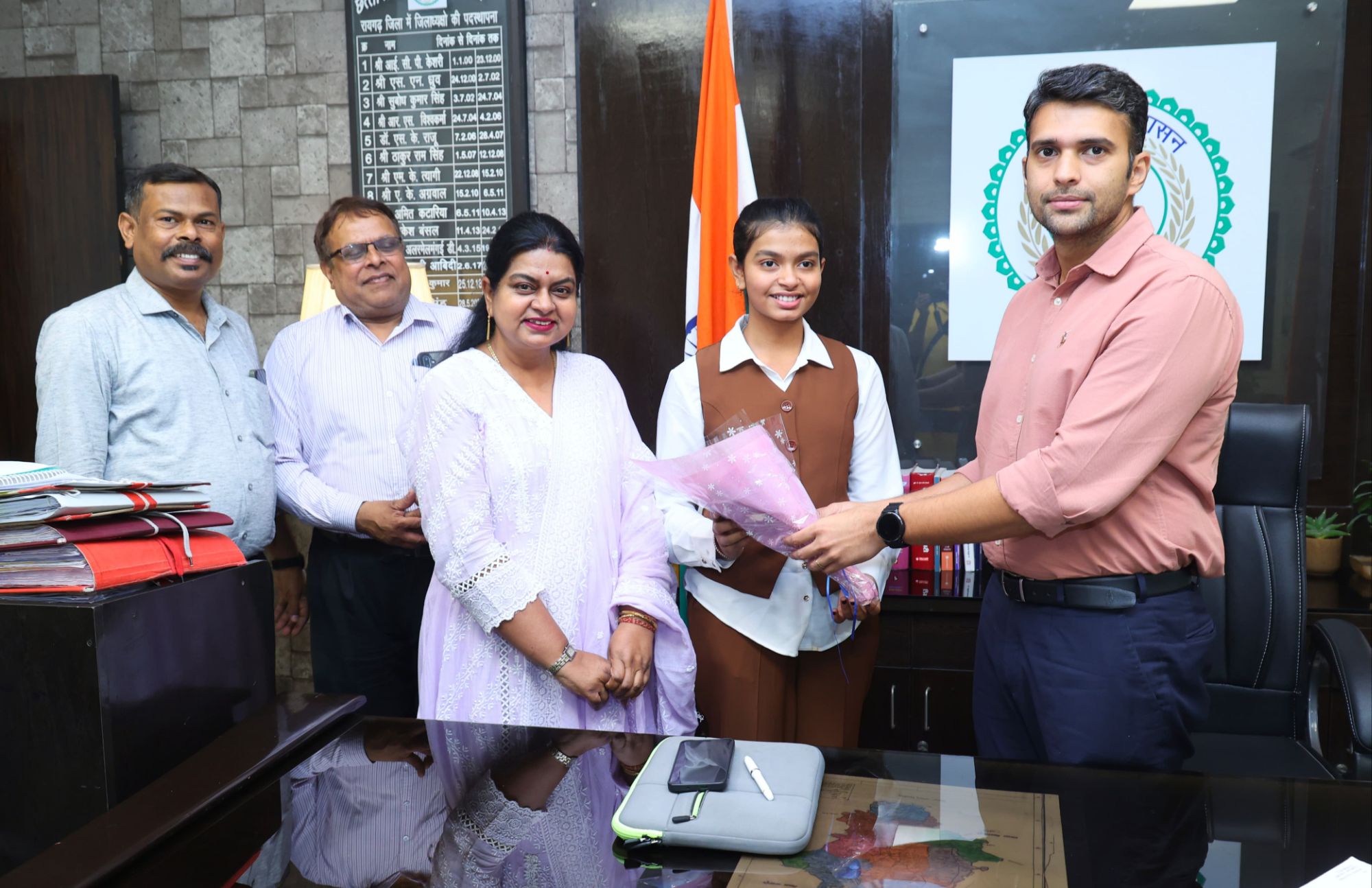 आज जिला कलेक्ट्रेट में कलेक्टर श्री मयंक चतुर्वेदी ने आद्यशा परिडा को अपने चेम्बर में आमंत्रित कर सम्मानित किया और उनकी इस उपलब्धि की सराहना की। इस अवसर पर कलेक्टर ने छात्रा के माता-पिता से भी मुलाकात कर उन्हें बधाई दी तथा उनके सहयोग और मार्गदर्शन की प्रशंसा की।