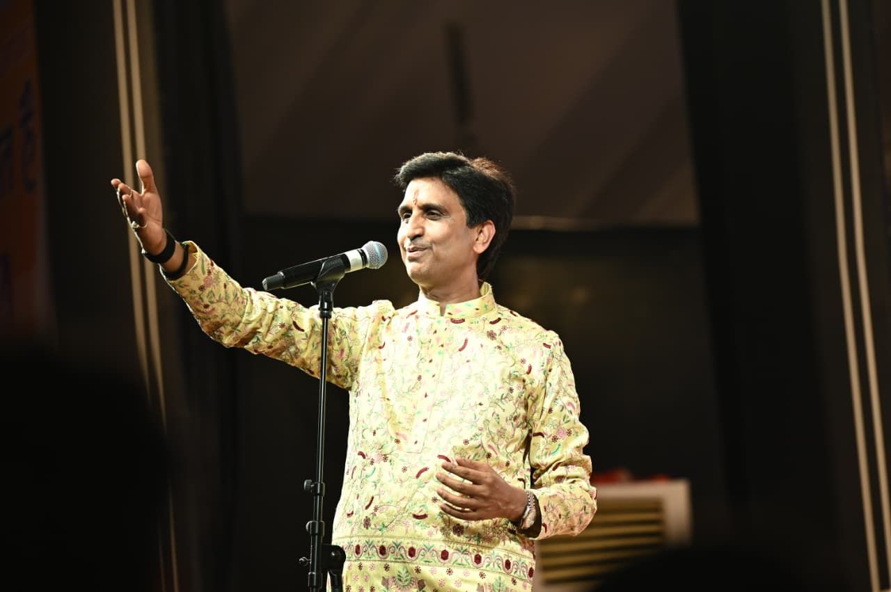 डॉ. कुमार विश्वास ने जब अपनी लोकप्रिय पंक्तियाँ “तुझी से शाम हो जाना, तुझी से भोर हो जाना…” सुनाईं तो पूरा सभागार तालियों की गड़गड़ाहट से गूँज उठा। उन्होंने अपने काव्य पाठ में “मिले हर ज़ख्म को मुस्कान से सीना नहीं आया, अमरता चाहते थे पर ज़हर पीना नहीं आया…” जैसी मार्मिक रचनाएँ भी प्रस्तुत कीं। इन पंक्तियों ने श्रोताओं को जीवन की विडंबनाओं और मानवीय संवेदनाओं की सजीव अनुभूति कराई। इसके साथ ही उनकी प्रसिद्ध रचना “कोई दीवाना कहता है, कोई पागल कहता है…” पर श्रोताओं ने उत्साहपूर्वक तालियाँ बजाईं। उनके व्यंग्य, शेरो-शायरी और सहज शैली ने कार्यक्रम को और भी रोचक और अविस्मरणीय बना दिया। समारोह में मौजूद दर्शकों ने तालियों की गूँज से अपने प्रिय कवि का स्वागत किया। डॉ. कुमार विश्वास की प्रस्तुतियों ने न केवल मंच की शोभा बढ़ाई बल्कि श्रोताओं के दिलों में साहित्य और कविता के प्रति गहरी छाप भी छोड़ी।
