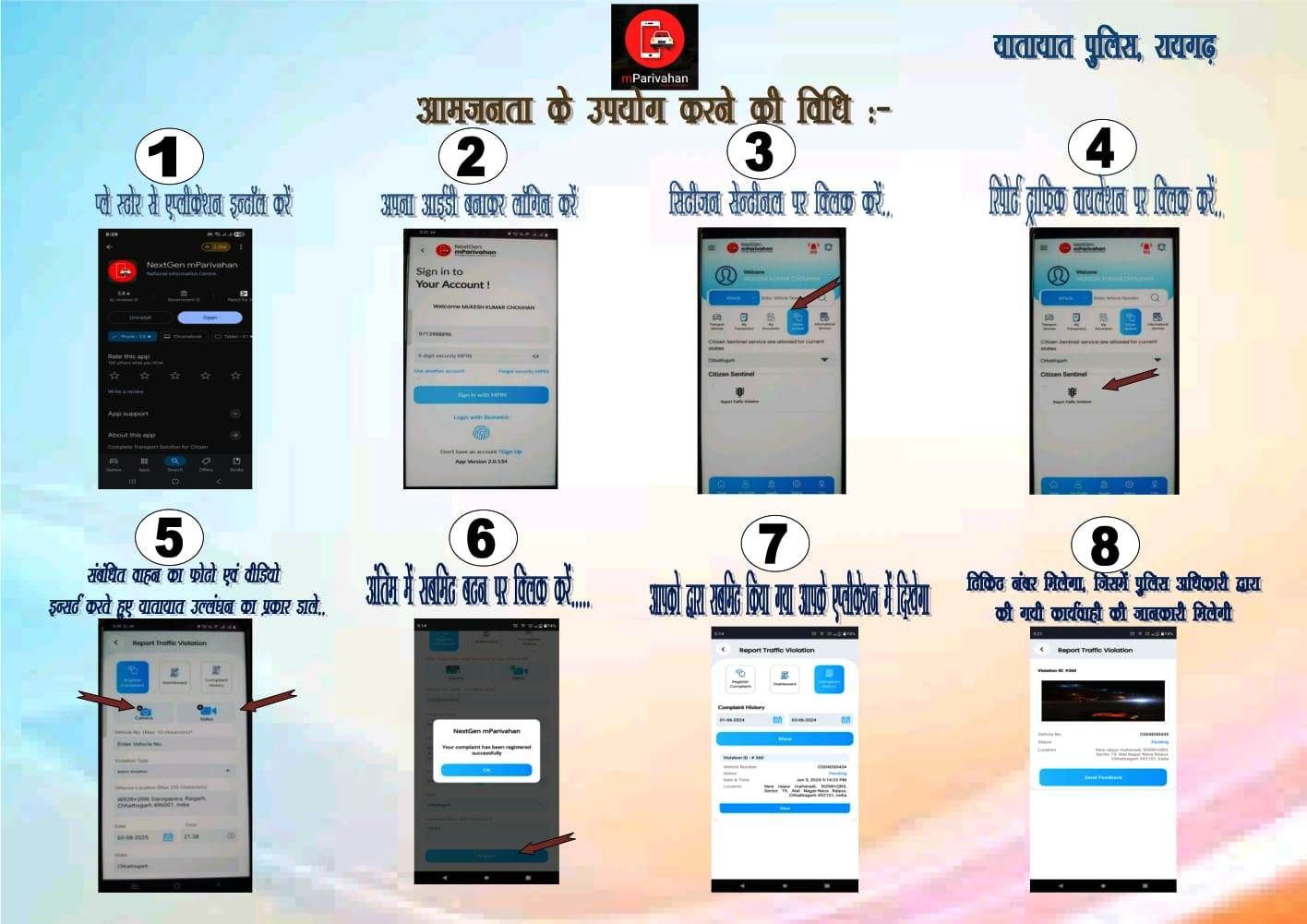 आज आयोजित प्रेस कॉन्फ्रेंस में पुलिस अधीक्षक श्री दिव्यांग पटेल ने जानकारी दी कि रायगढ़ में अक्सर वाहन चालकों द्वारा सड़कों पर अव्यवस्थित पार्किंग करने से जाम की स्थिति बन जाती है। यदि आमजन भी यातायात व्यवस्था में सहयोग करें तो यातायात और बेहतर होगा। इसी सोच के तहत आईटीएमएस की शुरुआत की जा रही है, जो फिलहाल अवैध पार्किंग की शिकायतों पर कार्य करेगी। इस ऐप को प्ले स्टोर से डाउनलोड किया जा सकता है। नागरिकों से अपील है कि जब भी कहीं गलत पार्किंग दिखाई दे, जिससे ट्रैफिक बाधित हो रहा हो, तो 10–15 सेकंड का वीडियो बनाकर एम-परिवहन ऐप में अपलोड करें। यह सूचना सीधे यातायात पुलिस रायगढ़ तक पहुंचेगी और सक्षम अधिकारी द्वारा सत्यापन के बाद वास्तविक पाए जाने पर वाहन स्वामी के खिलाफ ई-चालान जनरेट होगा।