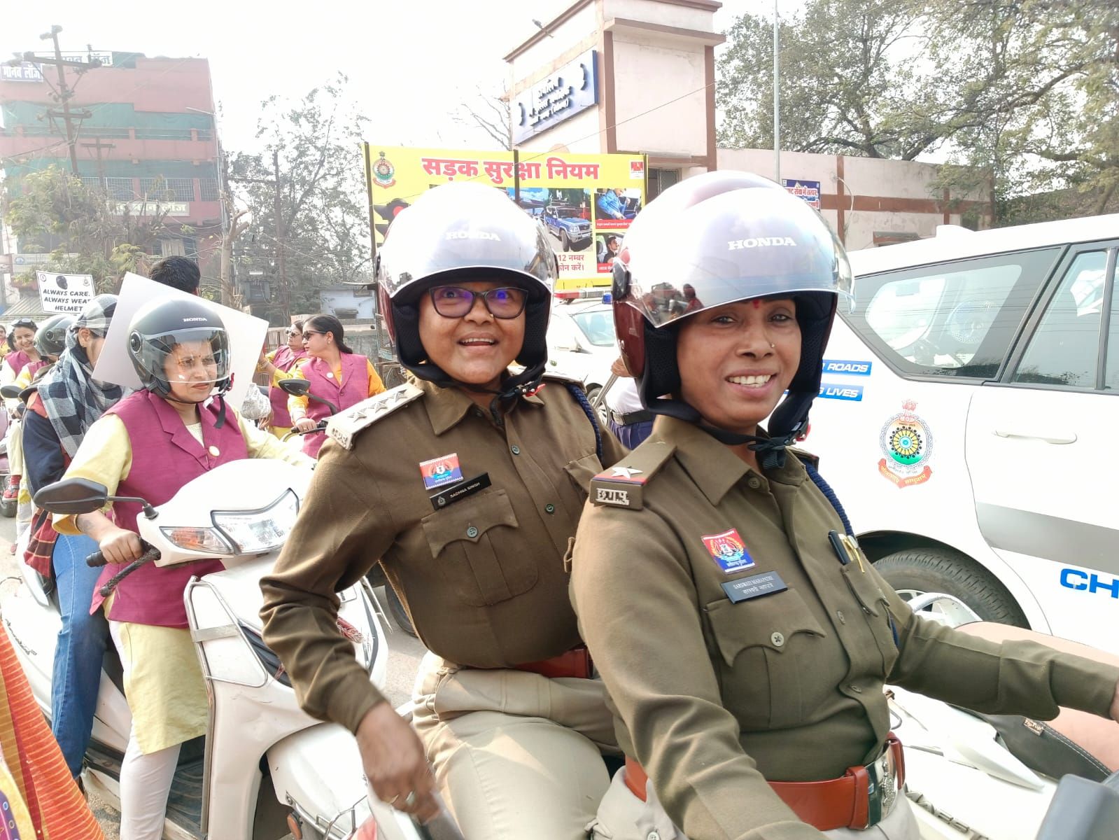 ➡️ *डीएसपी साधना सिंह के साथ साथ महिला टीम ने दोपहिया वाहन चालकों को हेलमेट पहनने व यातायात नियमों के पालन का दिया संदेश*