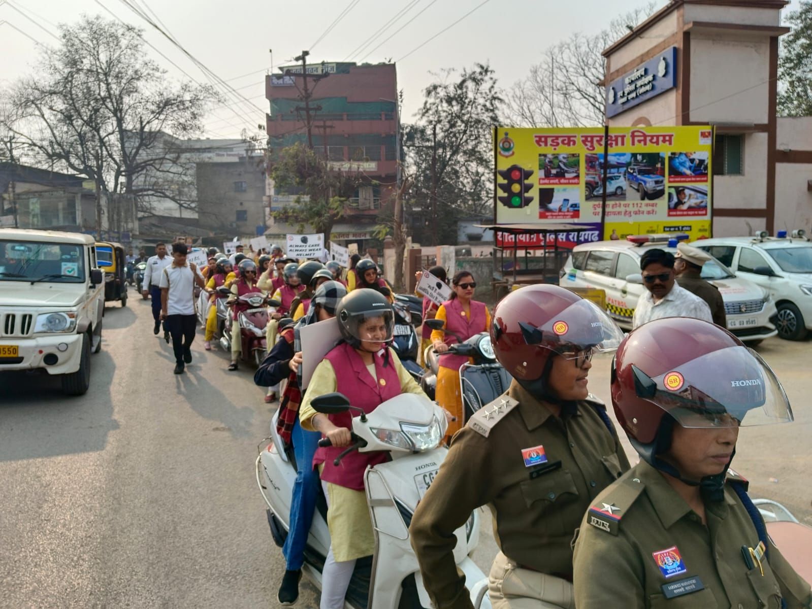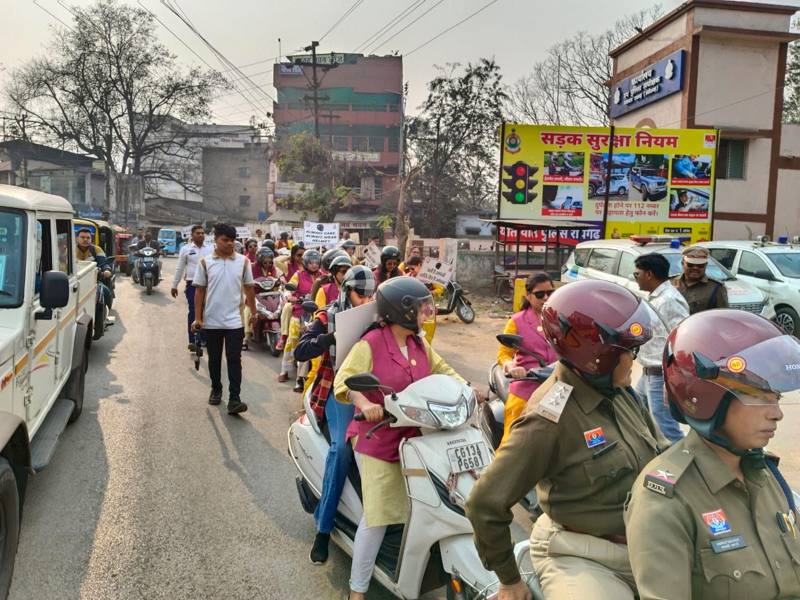 ➡️ रायगढ़ पुलिस द्वारा सड़क दुर्घटनाओं में कमी लाने एवं यातायात नियमों के प्रति जनजागरूकता के उद्देश्य से दिनांक 01.01.26 से 31.01.26 तक “राष्ट्रीय सड़क सुरक्षा माह 2026” मनाया जा रहा है, जिसके अंतर्गत जिलेभर में विविध जागरूकता कार्यक्रम आयोजित किए जा रहे हैं। इसी क्रम में आज दिनांक 29.01.26 को वरिष्ठ पुलिस अधीक्षक रायगढ़ श्री शशि मोहन सिंह के दिशा निर्देशन में डीएसपी साधना सिंह के नेतृत्व में महिला पुलिस अधिकारी-कर्मचारियों एवं प्रतिष्ठित महिला समूह “दिव्य शक्ति रायगढ़” के सदस्यों द्वारा हेलमेट जागरूकता रैली निकाली गई।