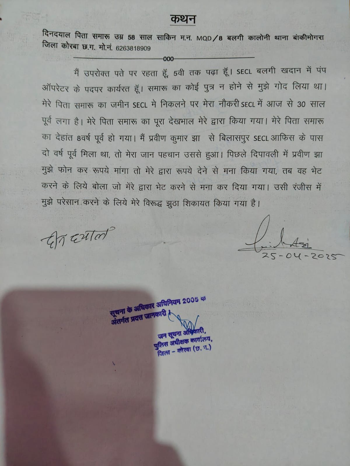 अब देखना है कि पुलिस कप्तान कोरबा क्या ठोस कार्रवाई करते हैं और पीड़िता को न्याय मिलता है या नहीं।