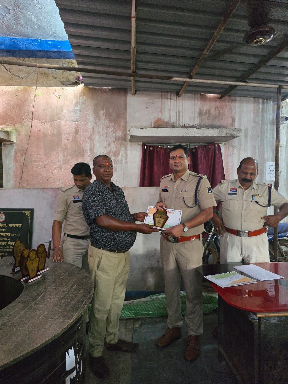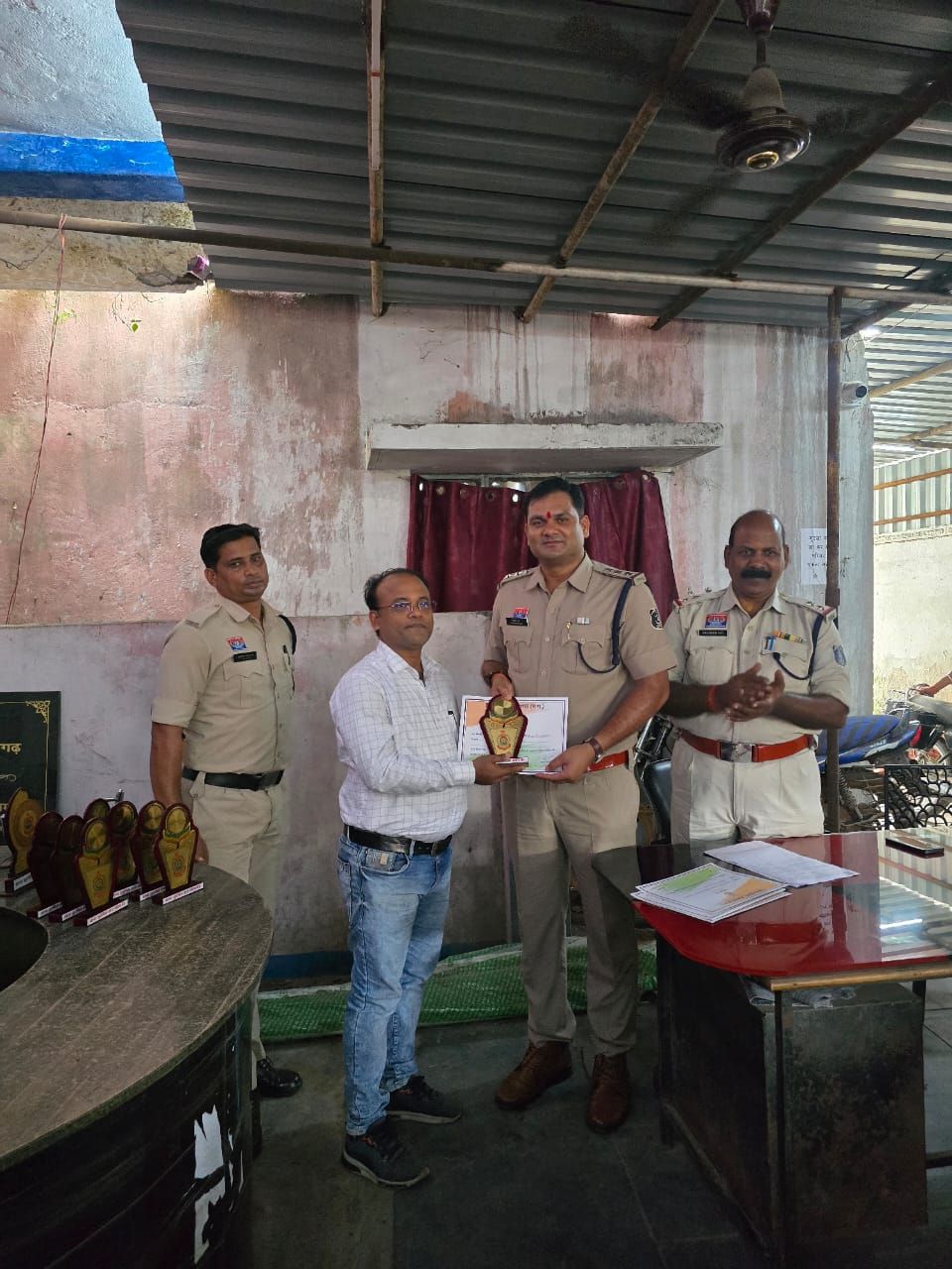 *रायगढ़, 5 अक्टूबर*। पुलिस अधीक्षक श्री दिव्यांग पटेल के दिशा-निर्देशन पर थाना जूटमिल में आज ग्राम कोटवारों के साथ थाना प्रभारी निरीक्षक प्रशांत राव की बैठक एवं स्थानीय नागरिकों का सम्मान समारोह आयोजित किया गया। नवरात्र और दशहरा पर्व के दौरान शांति व्यवस्था बनाए रखने में कोटवारों के योगदान की सराहना करते हुए थाना प्रभारी ने उनके उत्साहवर्धन हेतु उन्हें सम्मानित किया और गांवों की गतिविधियों की जानकारी ली। उन्होंने उपस्थित कोटवारों से कहा कि वे गांव में होने वाली किसी भी अनैतिक या आपराधिक गतिविधि की सूचना तत्काल पुलिस और प्रशासन को दें तथा अपनी जिम्मेदारी पूरी निष्ठा से निभाएं।