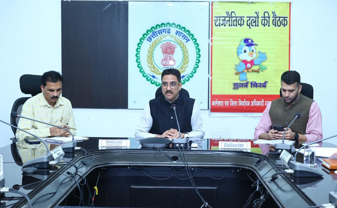 बैठक में कलेक्टर एवं जिला निर्वाचन अधिकारी श्री मयंक चतुर्वेदी ने सभी राजनीतिक दलों के प्रतिनिधियों से सक्रिय सहयोग की अपील करते हुए कहा कि प्राप्त दावा-आपत्तियों के समयबद्ध एवं पारदर्शी निराकरण हेतु प्रशासन पूरी तरह प्रतिबद्ध है। बैठक में श्री मनीष गांधी, श्री इनोसेंट कुजूर, श्री समय लाल, श्री बनवारी लाल डहरे, श्री आशीष शर्मा, श्री गोपाल बापोड़िया, श्री प्रिंकल दास, नगर निगम आयुक्त श्री बृजेश सिंह क्षत्रिय, उप जिला निर्वाचन अधिकारी डॉ. प्रियंका वर्मा, संबंधित ईआरओ-एईआरओ उपस्थित रहे।